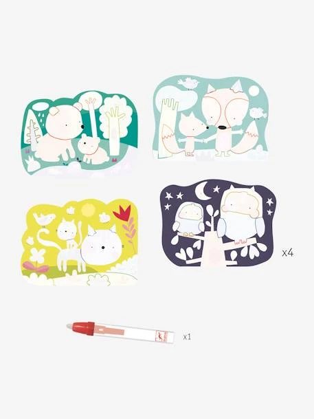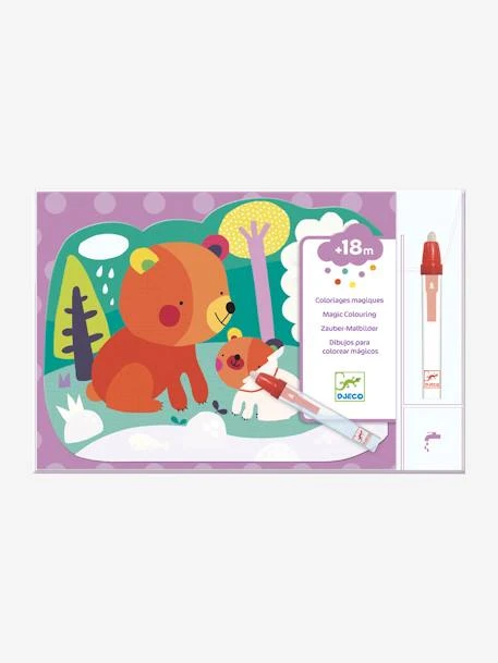 4 Coloriages magiques à l’eau « Caché dans les bois » par Djeco : dès 18 mois, on remplit le stylo avec de l’eau. L’enfant colorie pour faire apparaitre les surprises. Quand c’est sec, il recommence, à l’infini !