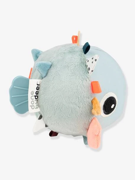 Avec le Jouet d’Eveil Puffee de Done by Deer, votre bébé et ses petites mains découvriront plein de nouvelles sensations. Des ailerons à caresser, des bruits à écouter, un anneau à mâchouiller et des étiquettes à gratouiller, voilà de quoi s’occuper ! En forme de balle, ce petit poisson sera très amusant puisqu’il pourra rouler dans le parc de bébé ou sur son tapis d’éveil. Votre bout de chou s’amusera à le suivre partout. Le petit plus ? vous aurez la possibilité d’attacher le jouet à une arche, une poussette ou un parc grâce à son lien.