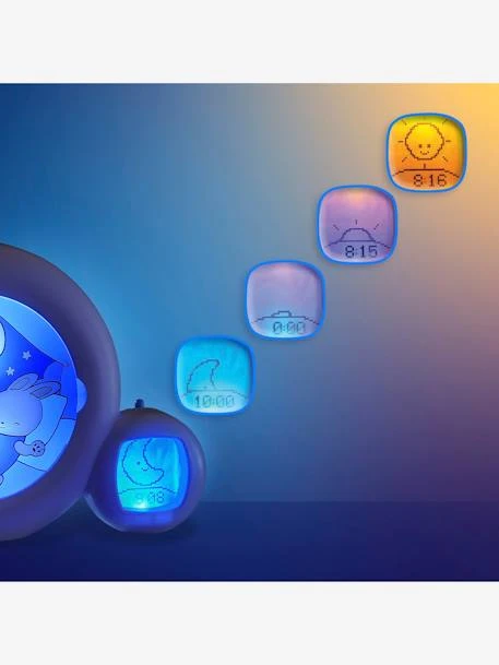 Le Kid’Sleep Moon est un indicateur de lever tout-en-un qui aide l’enfant à savoir si c’est encore l’heure de dormir ou si c’est l’heure de se lever. Si la figurine est illuminée en position de sommeil avec la lune, c’est encore l’heure de dormir. Au matin, lorsque la lune commence à se coucher (durée ajustable), l’enfant sait que c’est bientôt l’heure de se lever ! A l’heure réglée par les parents, le soleil se lève et la figurine passe en position réveillée, l’enfant sait qu’il peut se lever !