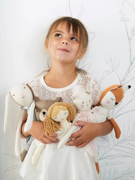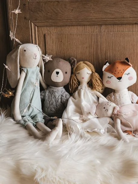 Peluche renarde en coton et lin. Garnissage 100% polyester.