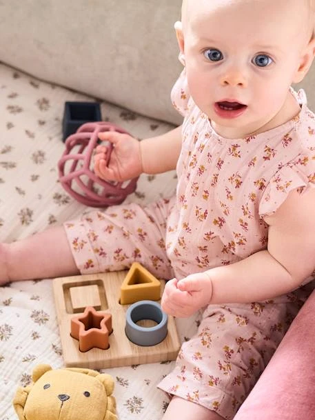 - Puzzle avec 4 formes en silicone à encastrer ( 1 carré, 1 triangle, 1 étoile, 1 cercle)