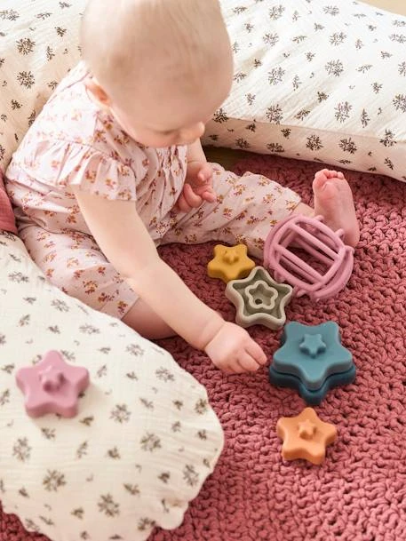 Parmi les étapes du développement de la motricité de bébé, l’empilage nécessite beaucoup de dextérité ! Grâce à cette pyramide d’étoiles en silicone, l’enfant s’exerce à enfiler chaque étoile de la plus grande à la plus petite. Un jouet en silicone dans l’air du temps, qui plait également pour ses jolies couleurs.